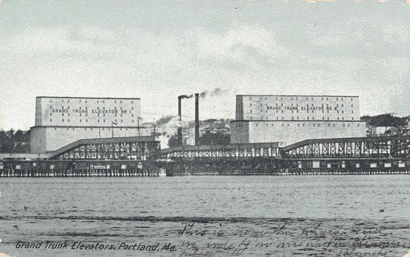 Portland Maine~Grand Trunk Grain Elevators~Shipping Docks~1905 B&W Postcard
