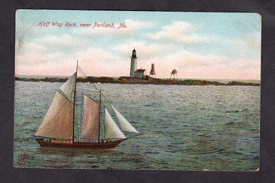 Portland ME Half War Rock Lighthouse 1900's Postcard