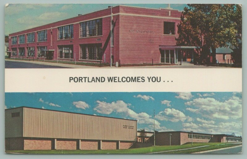 Portland Michigan~High School~St.Patrick's High~2 Views~Flag Pole~1960's