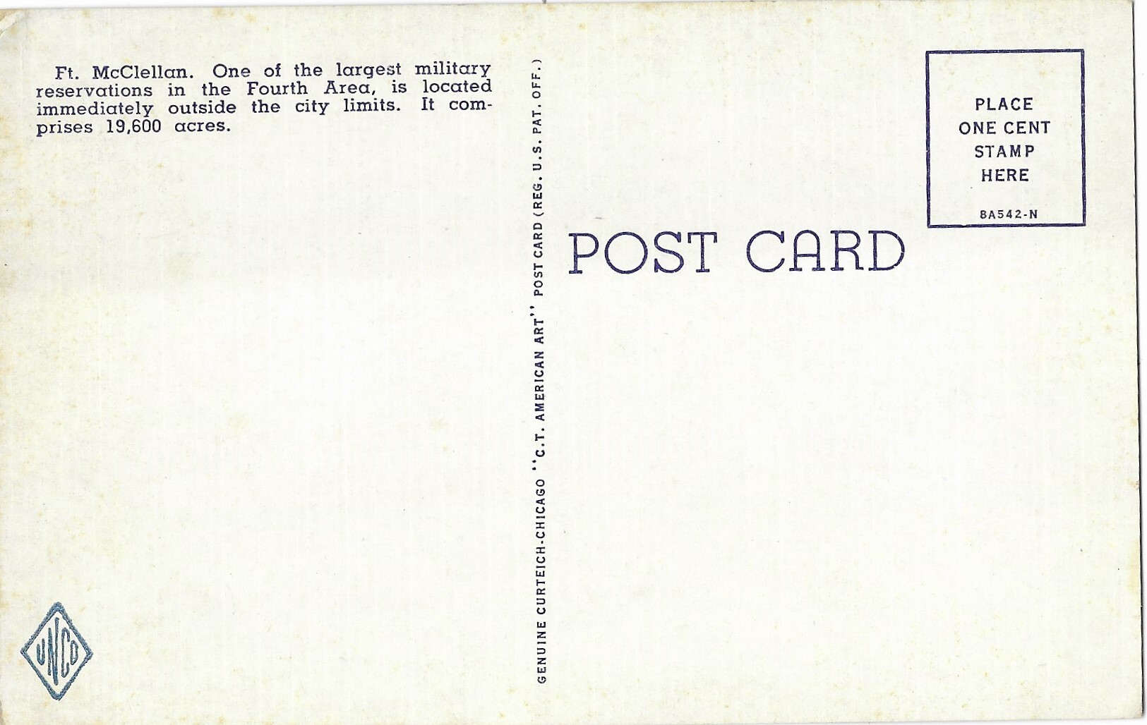 Fort McClellan, one of the largest military reservations in the Fourth Area, Post Hospital. Tiny crease at top right cornerSeller Information
