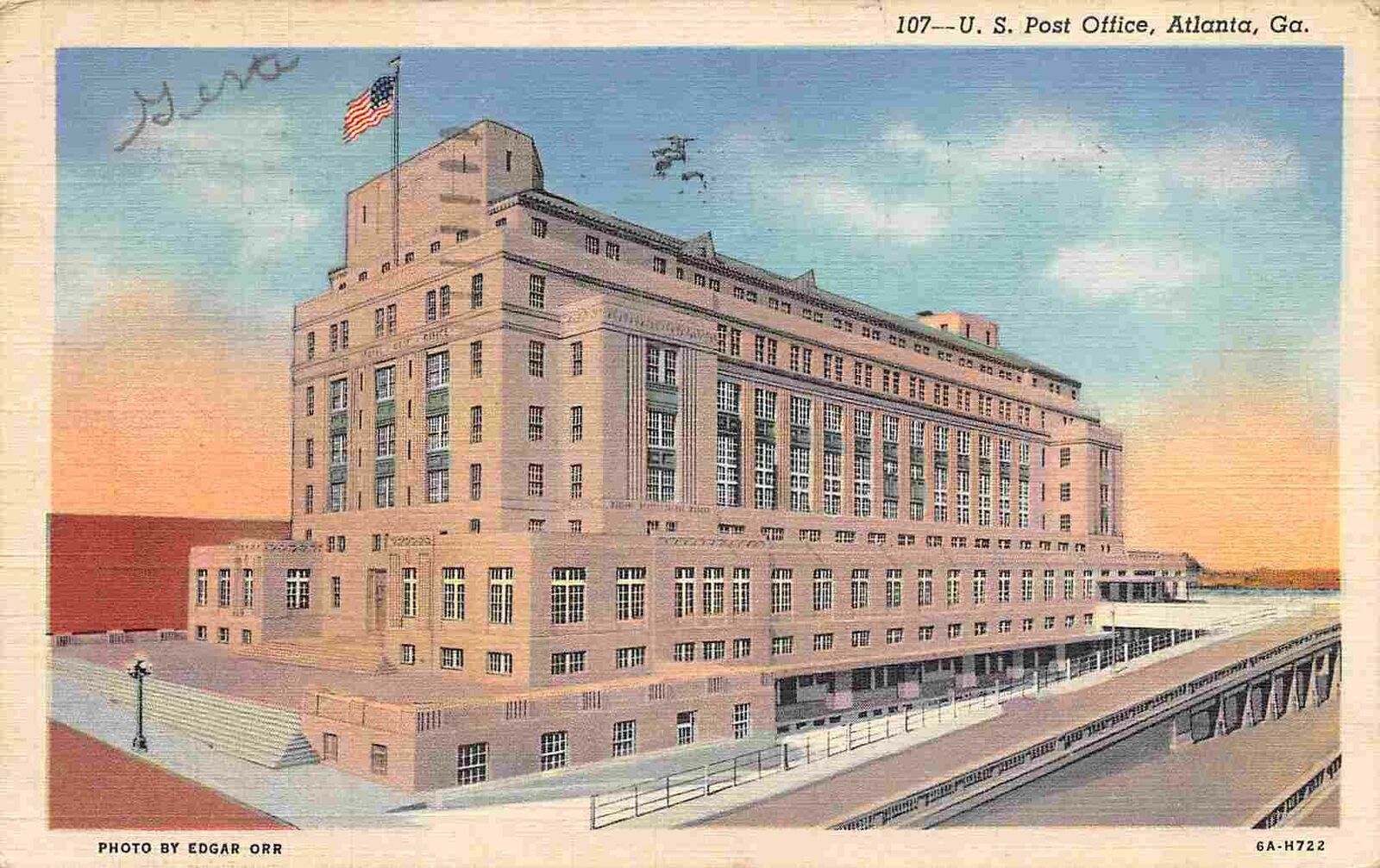 Description: Post Office Atlanta Georgia 1943 linen postcard Type: linen Condition: very good+, light corner wear Any hatched effect is scanner effect, not on actual picture on card. Postal Use: used, posted 1943 MO ... Read More