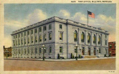 Post Office - Billings, Montana MT Postcard Postal Date: 1941 Grade: 2 Size: Regular Size Postcard - approximately 3 1/2 inch x 5 1/2 inch (9 CM x 14 CM) Grading Scale: Grade 1 = Perfect corners Grade 2 = Ver ... Read More