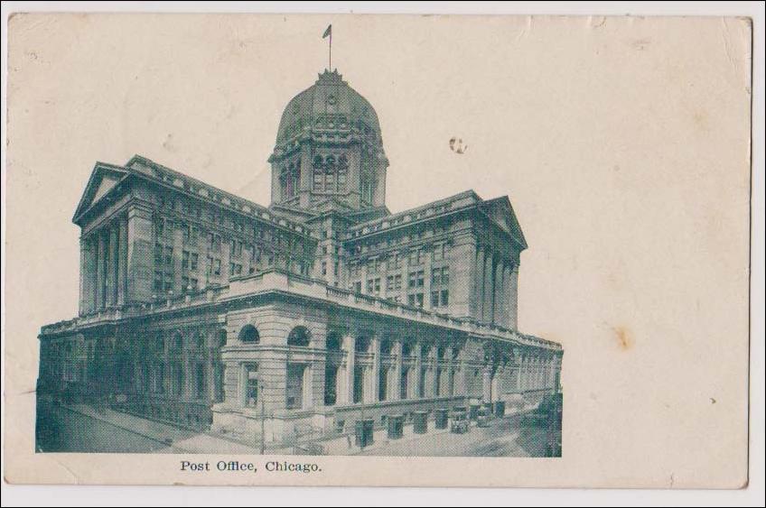 Post Office, Chicago Ill PM 1908 / VG / PrintedGrading of Postcards MINT (M): Perfect condition, no apparent blemishes, flaws, postally unused, may have some writing on back. NEAR MINT (NM): Like new, image is unc ... Read More