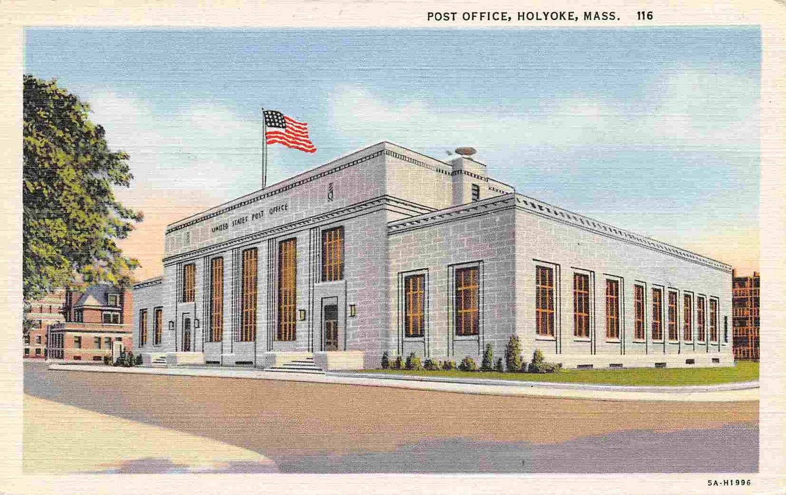 Post Office Holyoke Massachusetts linen postcard