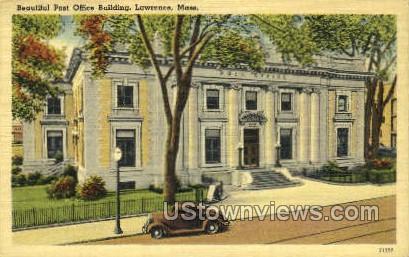 Post Office - Lawrence, Massachusetts MA Postcard - Unused Grade: 2 Size: R - Regular size: Approx 3 1/2 X 5 1/2 inch (9 cm X 14 cm) Grading Scale: Grade 1 = Perfect corners Grade 2 = Very Minimal corner wear, ... Read More