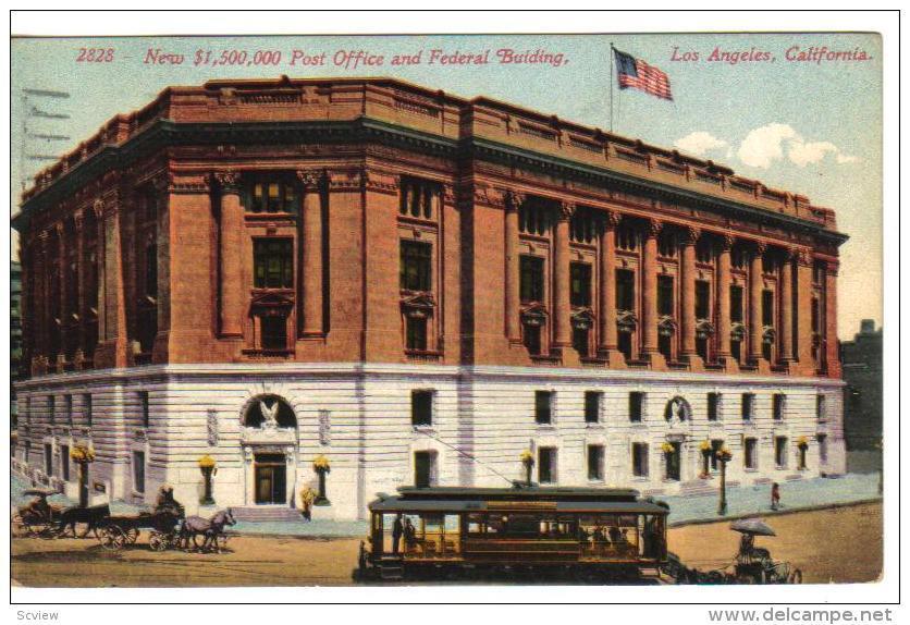 Post Office , LOS ANGELES , California , PU-1913 :: Postcard, 3.5" x 5.5", Litho , VG
