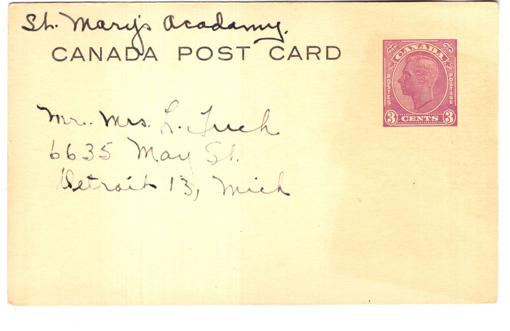 Postal Stationery Canada, George VI 3 Cent Purple Postcard