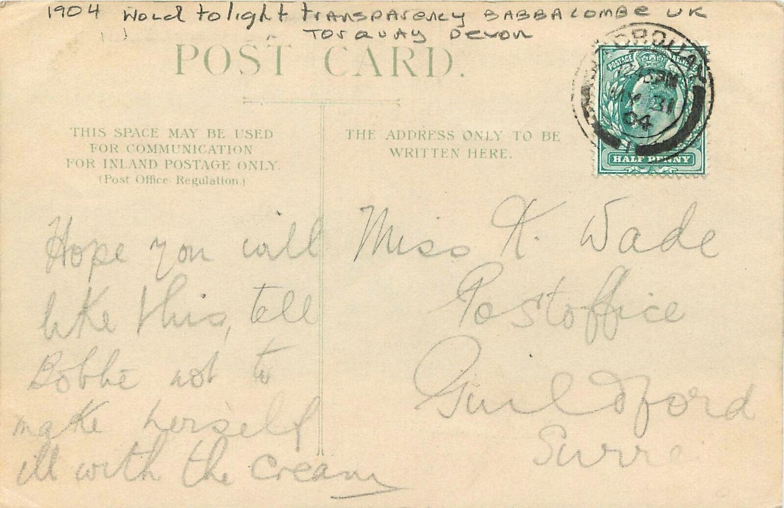 Postcard 1904 Hold to light Transparency Babbacombe Torquay Devon UK24-198