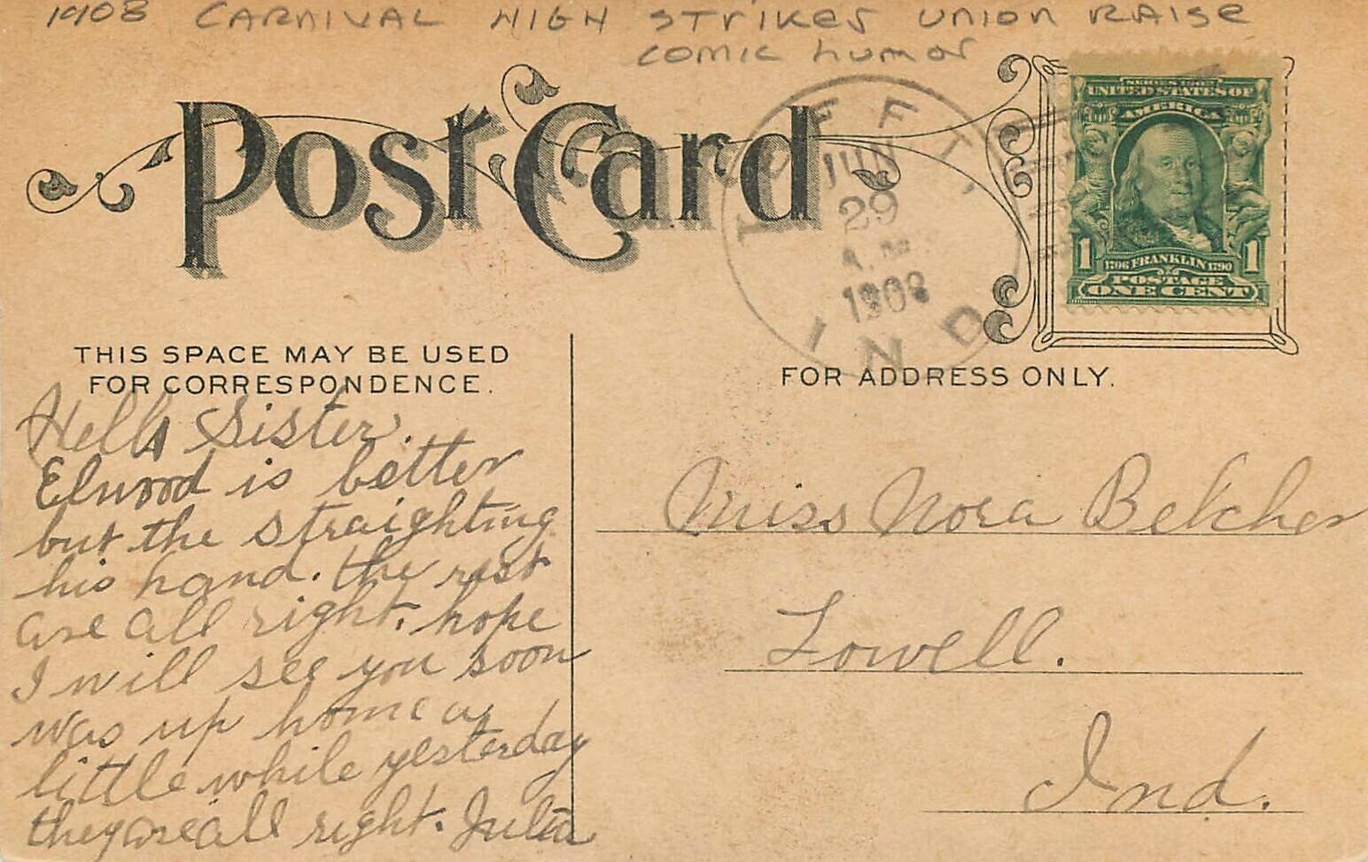Postcard 1908 Carnival High Stakes Union worker comic humor 22-13968