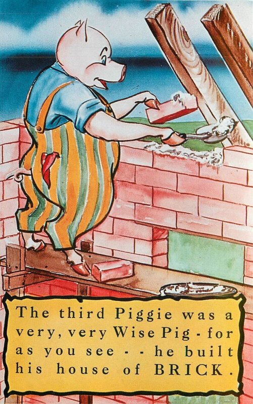 Postcard 1959 Three little pigs big bad wolf comic art