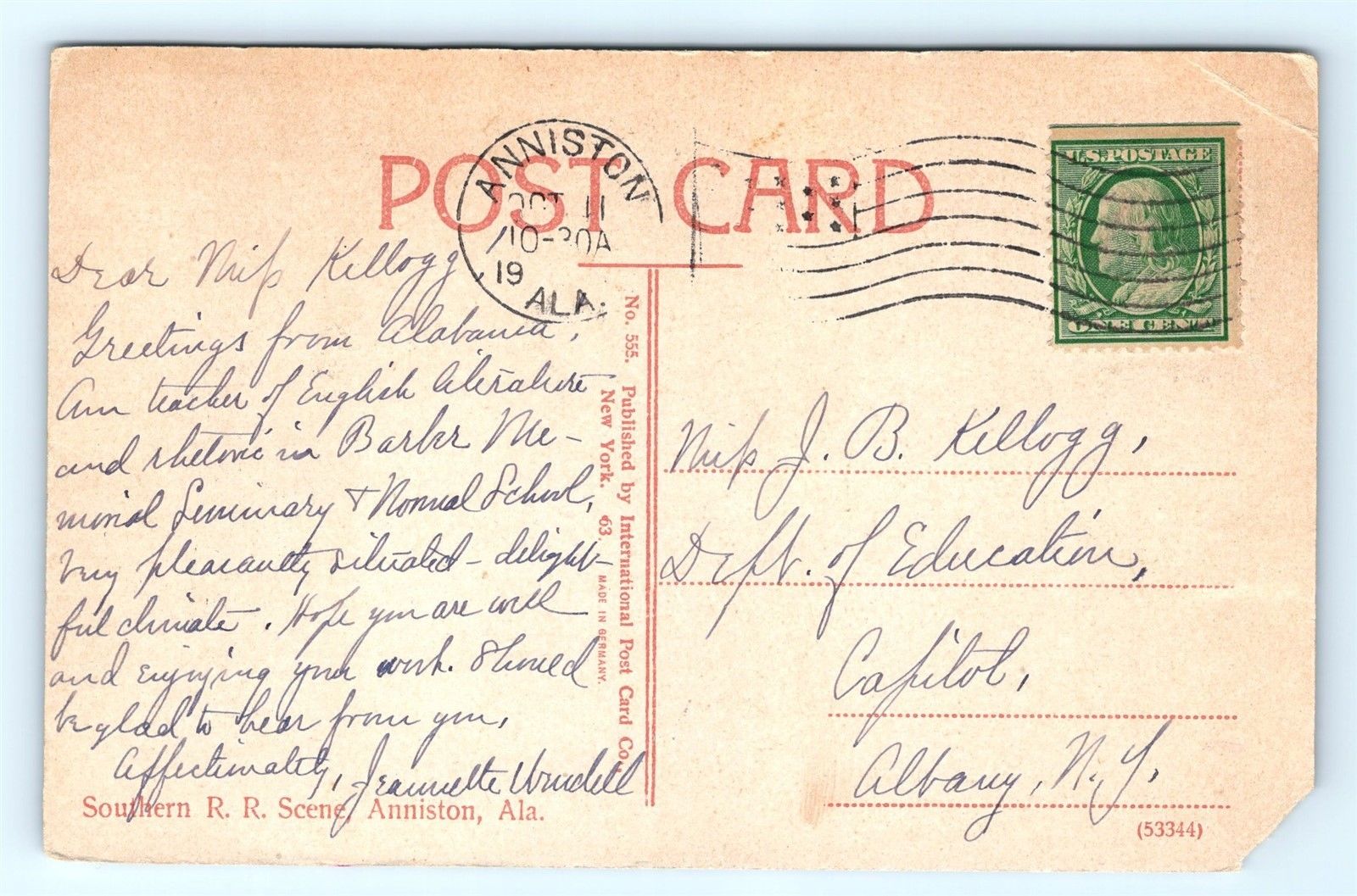 Postcard AL Anniston Southern Railroad Scene c1915 View L03 - Note missing corner see pictures for condition use the zoom and please ask questions