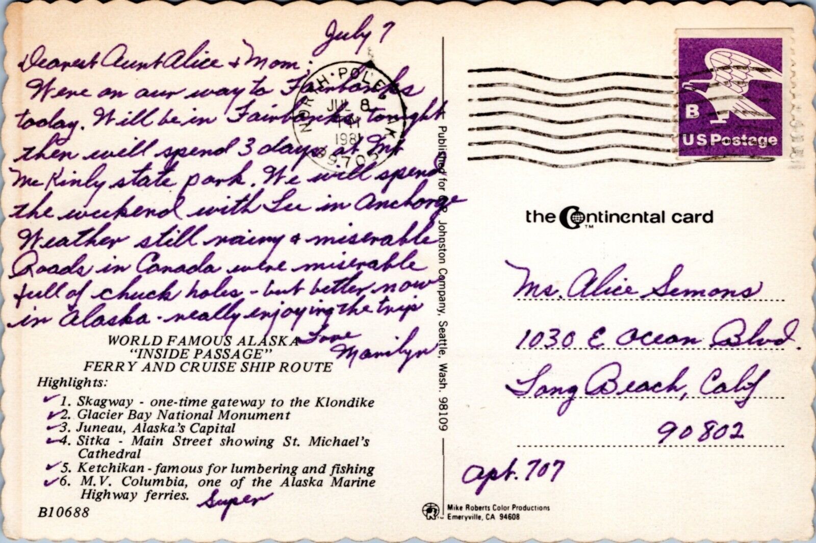 Postcard Alaska Map - South East Alaska Inside Passage