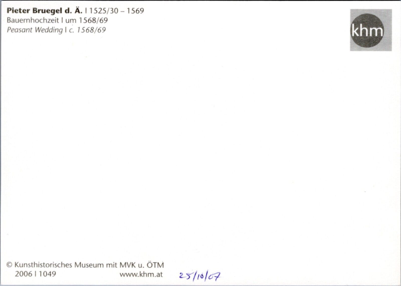 Postcard Art Pieter Bruegel the Elder - Peasant Wedding