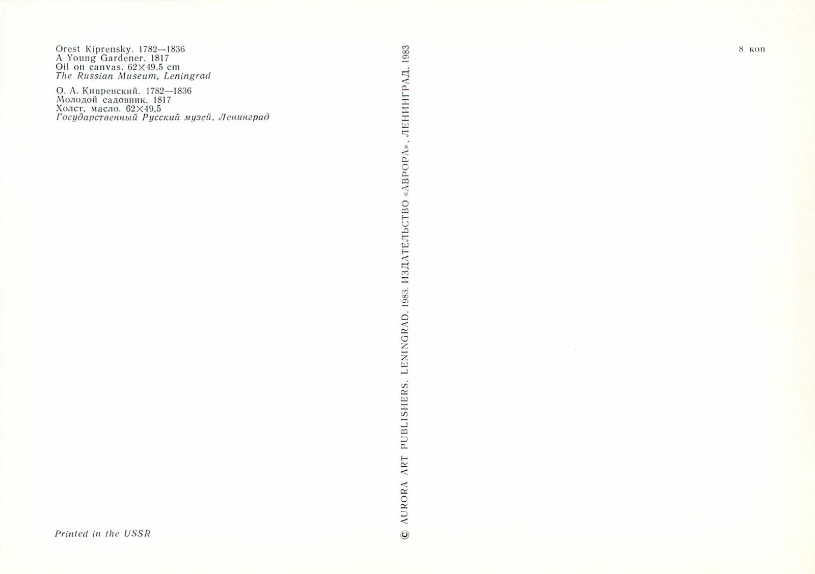 Postcard Artist Orest Kiprensky a young gardener