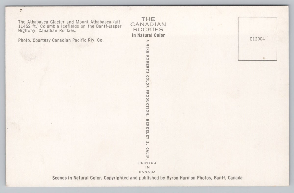 Postcard Athabasca Glacier Alberta Canada Mountains Trees 1960s Chrome View Condition is "Pre-owned". Condition of postcard is normal with age and storage. Might have some yellowing/tanning, creases and edge dents, ... Read More