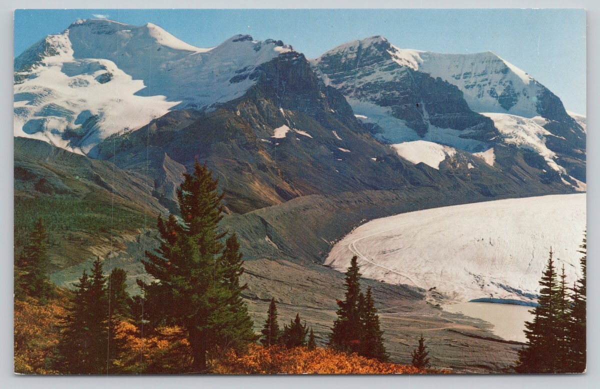 Postcard Athabasca Glacier Alberta Canada Mountains Trees 1960s Chrome View