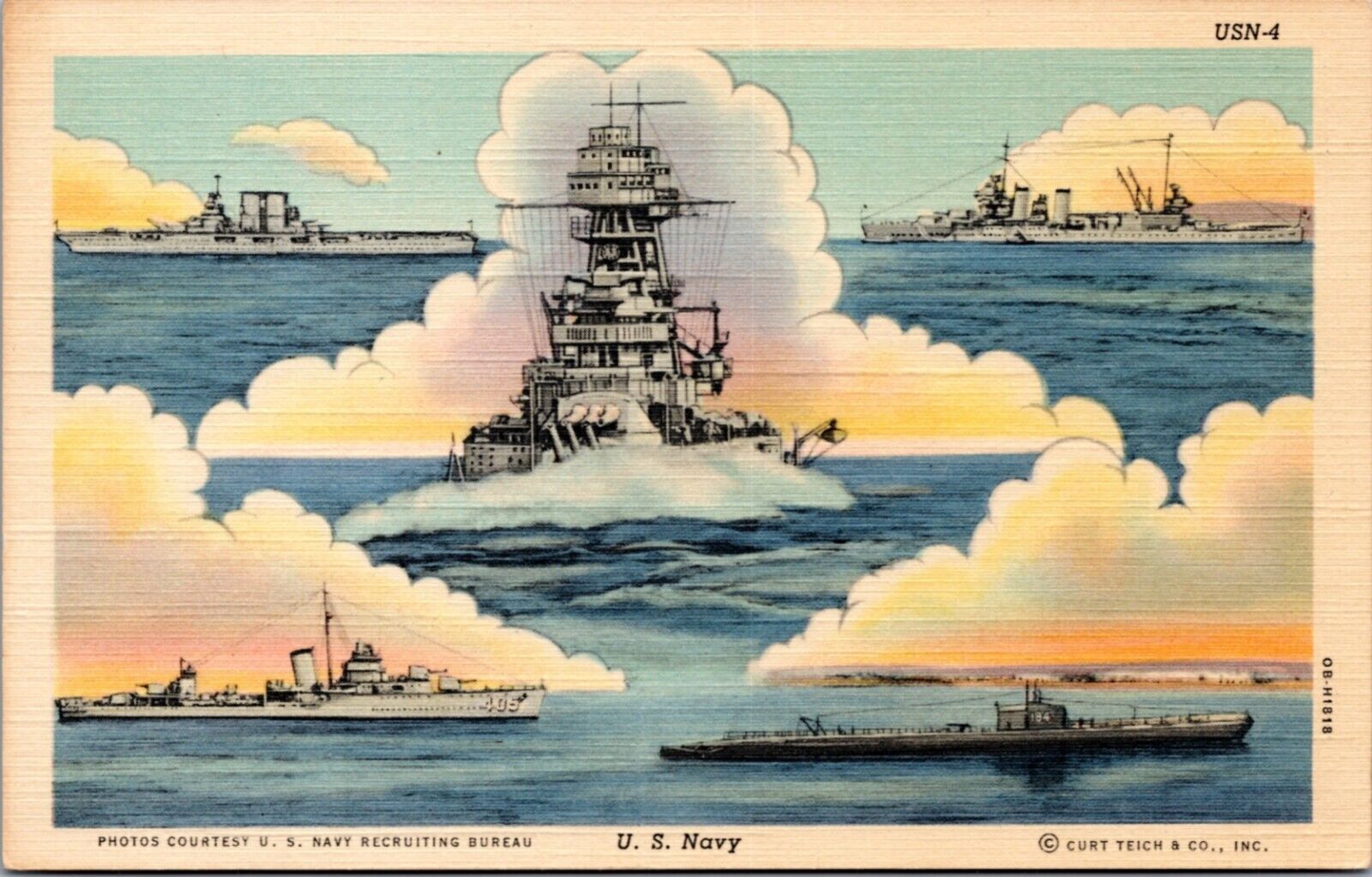 Postcard Battleships - US Navy 1940 Curt Teich series USN-4 Recruiting image