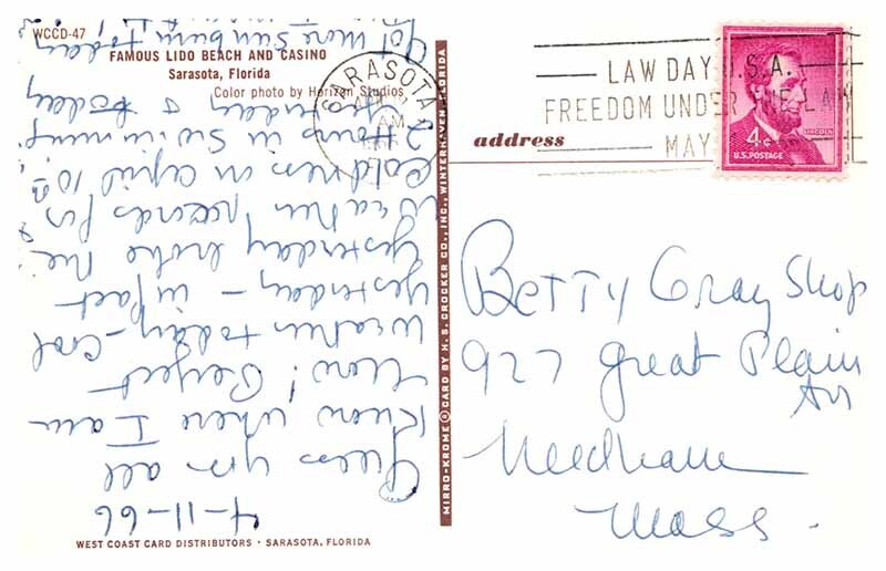 Postcard BEACH SCENE Sarasota Florida FL AR2913