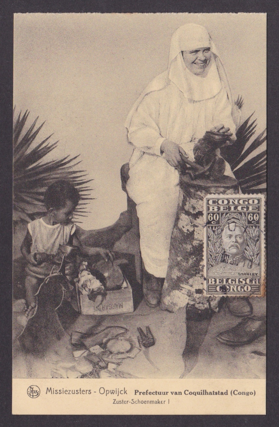 Postcard, BELGIAN CONGO, Nun and child
