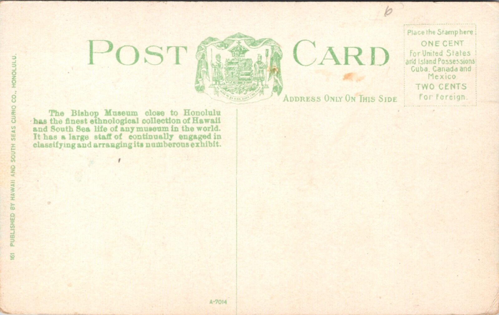 Postcard Bishop Museum in Honolulu, Hawaii