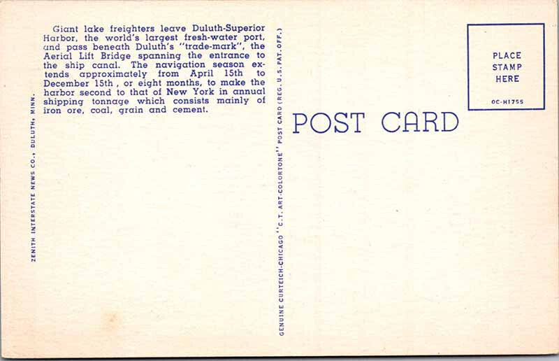 Postcard BOAT SCENE Duluth Minnesota MN AN9890