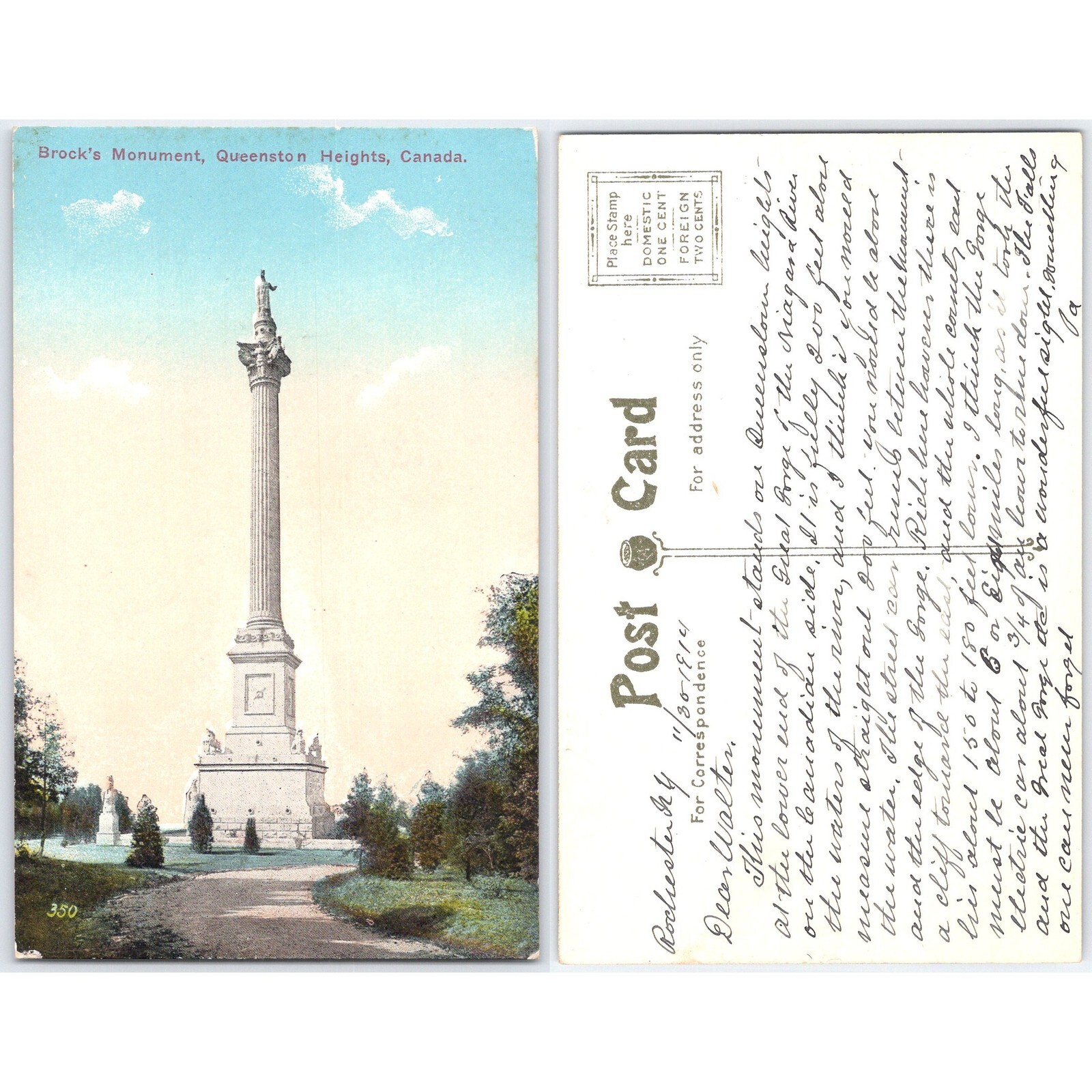 Postcard Brock's Monument Queenston Heights Canada