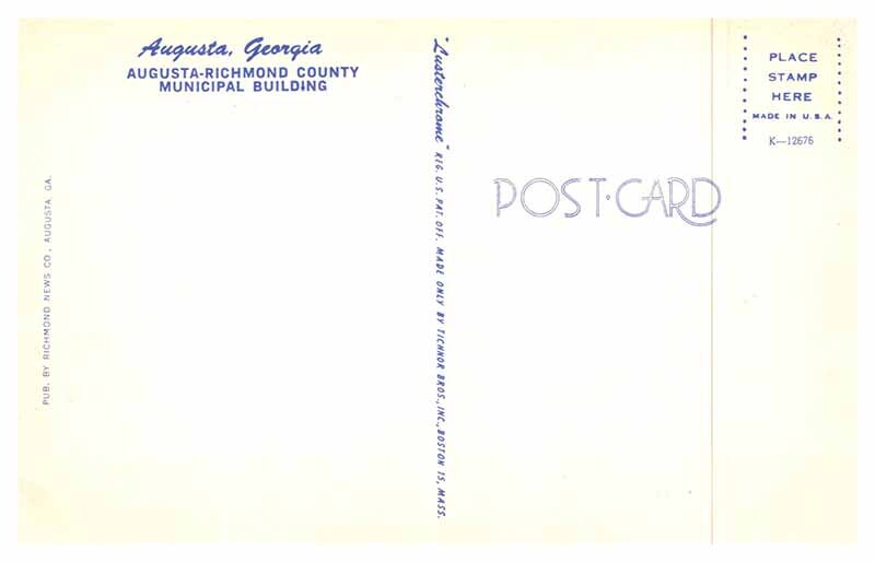 Postcard BUILDING SCENE Augusta Georgia GA AT0783