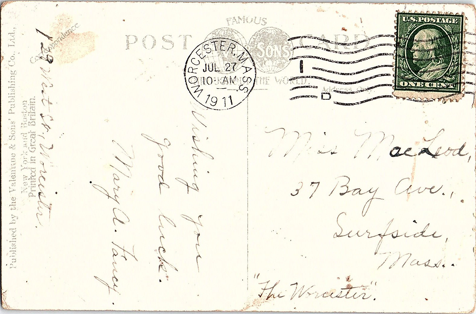 Postcard BUILDING SCENE Worcester Massachusetts MA AI4256