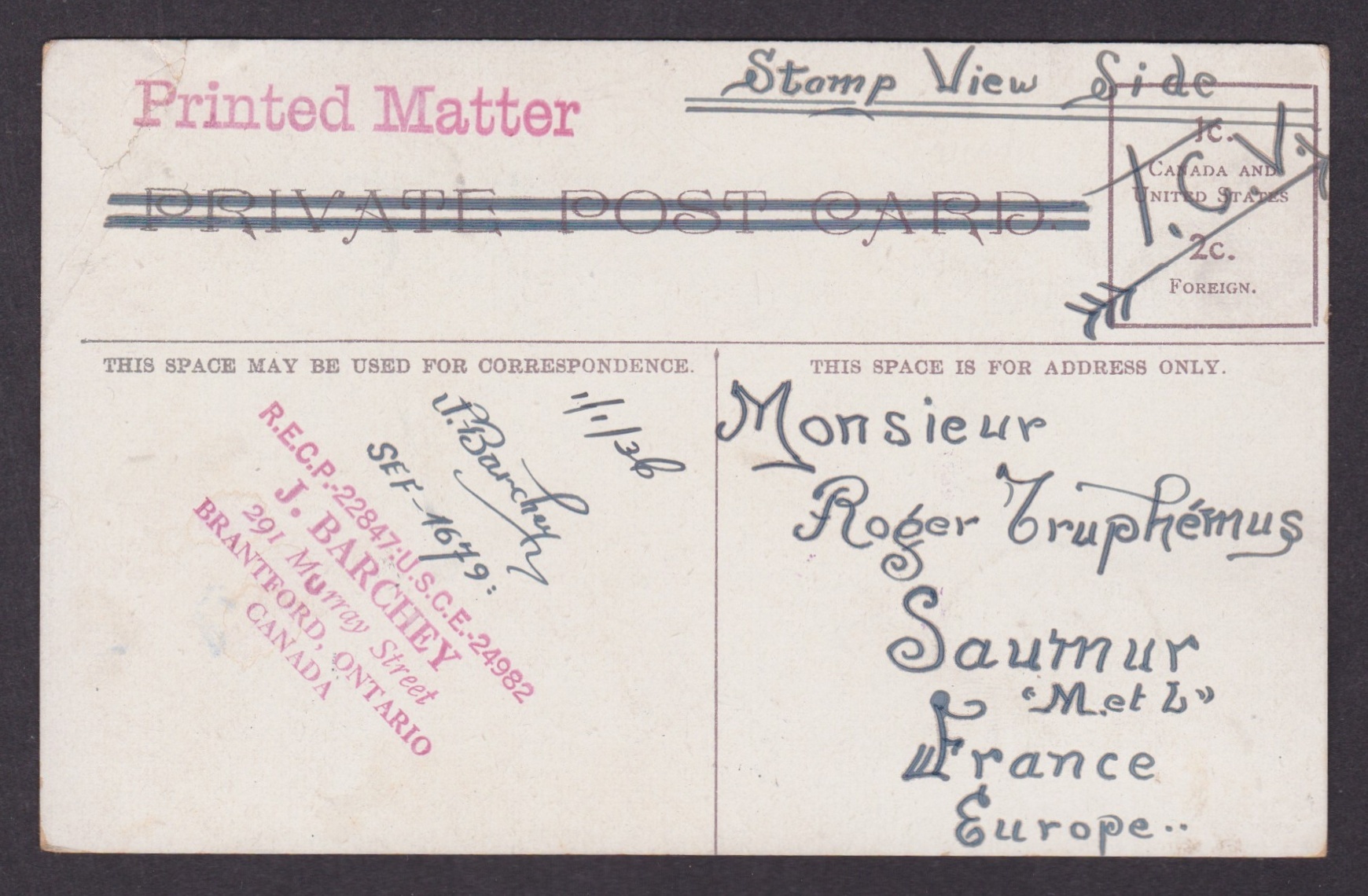 Postcard, CANADA, Brantford, Brants MonumentThe postcard has a small crease. Please, look at the pictures!