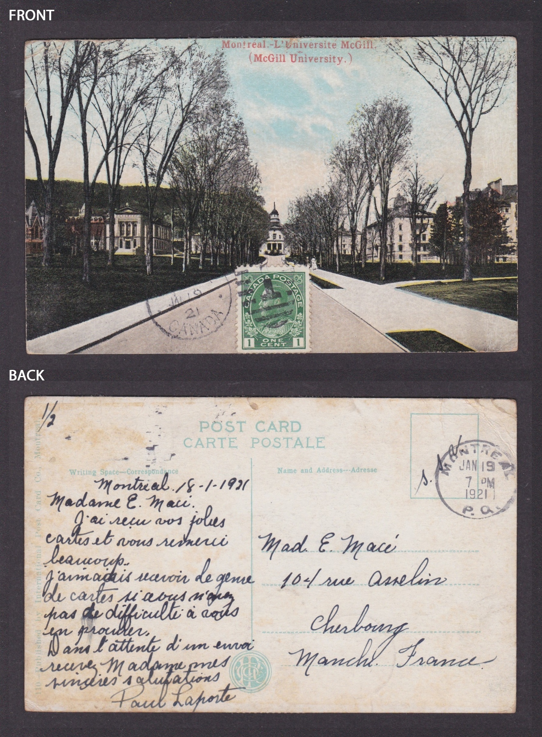 Postcard, CANADA, Montreal, McGill University Please, look at the pictures!