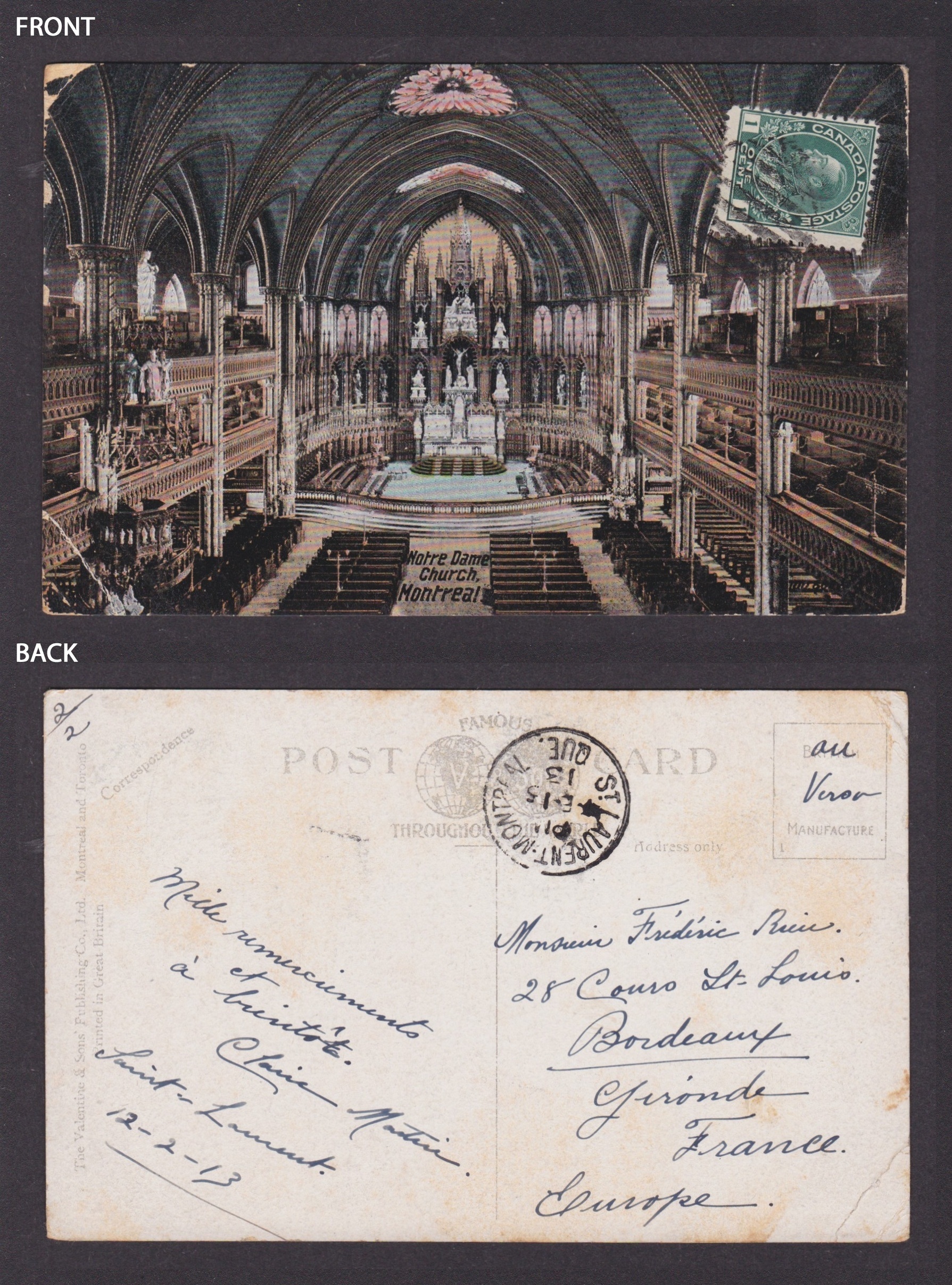 Postcard, CANADA, Montreal, Notre-Dame Basilica, Interior The postcard has a crease. Please, look at the pictures!