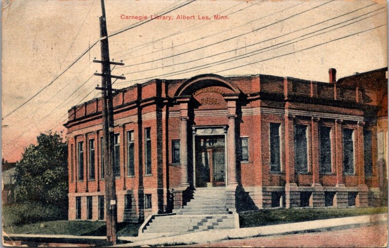 Postcard Carnegie Library in Albert Lea, Minnesota