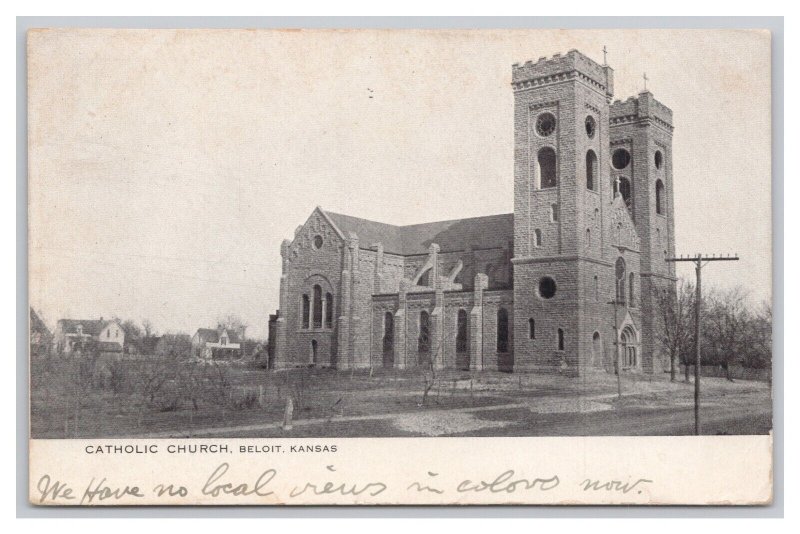 Postcard Catholic Church Beloit Kansas c1907 Postmark