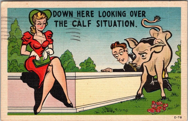 Postcard Comic Cow Risqué Woman PM Batavia NY JH7