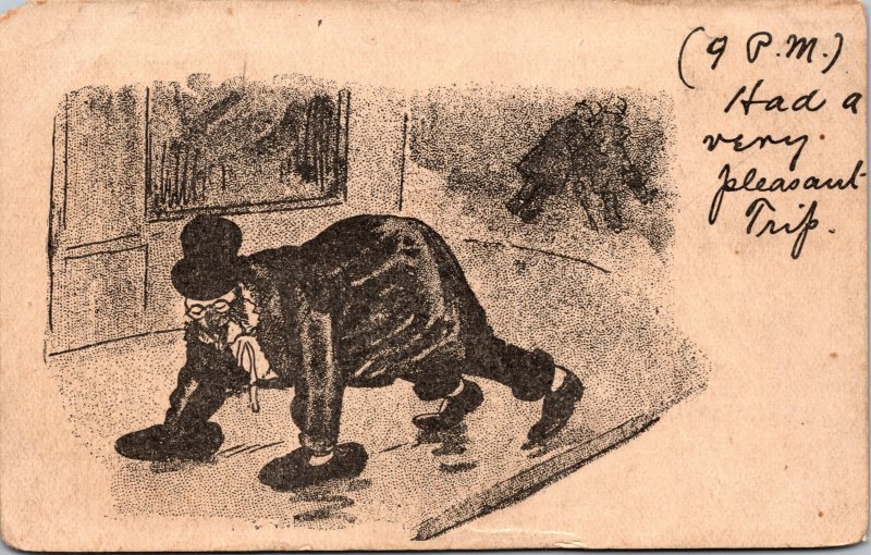 Postcard Comic Drunk Man Crawling “Pleasant Trip” 1907