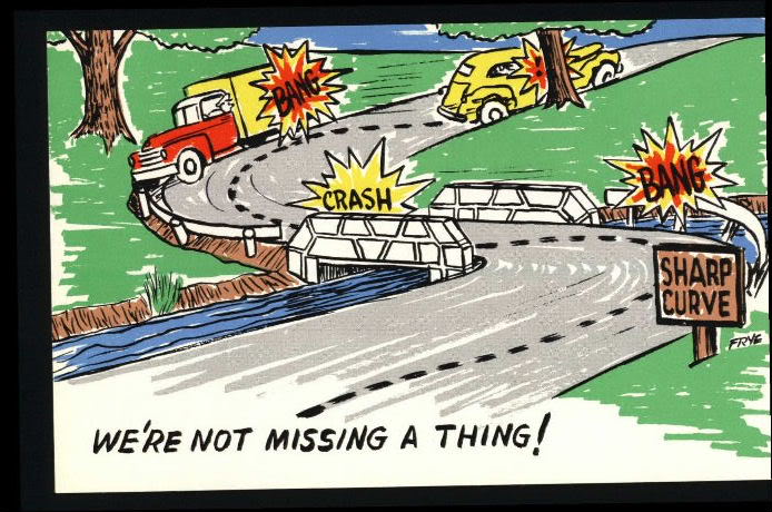 Postcard-Comic Highway Humor Crash Sharp Curves