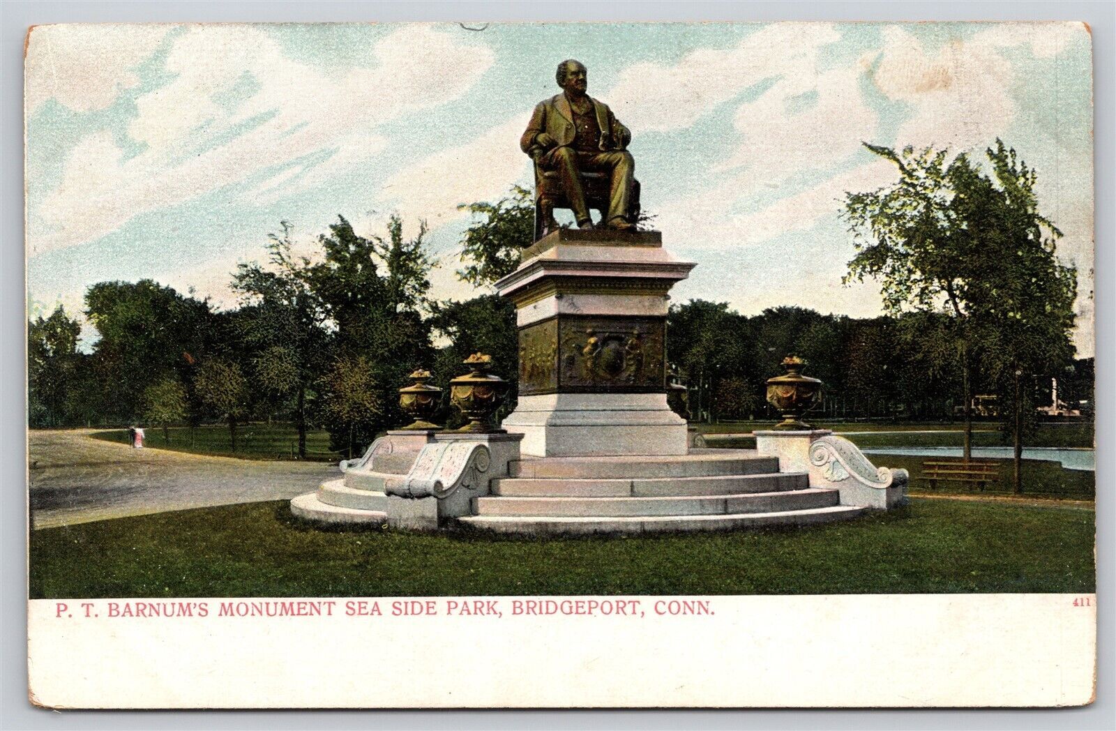 Postcard CT Bridgeport P.T. Barnums Monument Sea Side Park