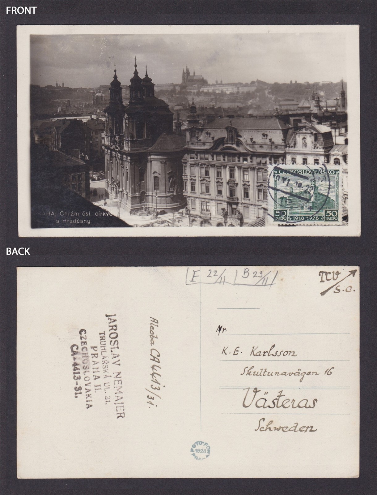 Postcard CZECHIA, Prague, Chrám čsi církve a Hradčany Please, look at the pictures!