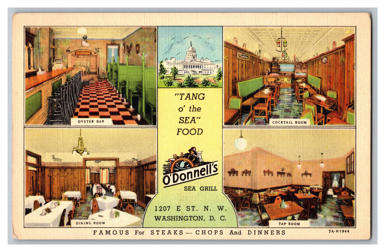 Condition: Unmailed, Showing Wear From Handling. Reasonable Offers Always Considered. Postcard DC O'Donnell's Sea Grill Washington, D. C. Vintage Standard Multi View PostcardPostcard Enclosed in Clear SleevePlaced ... Read More