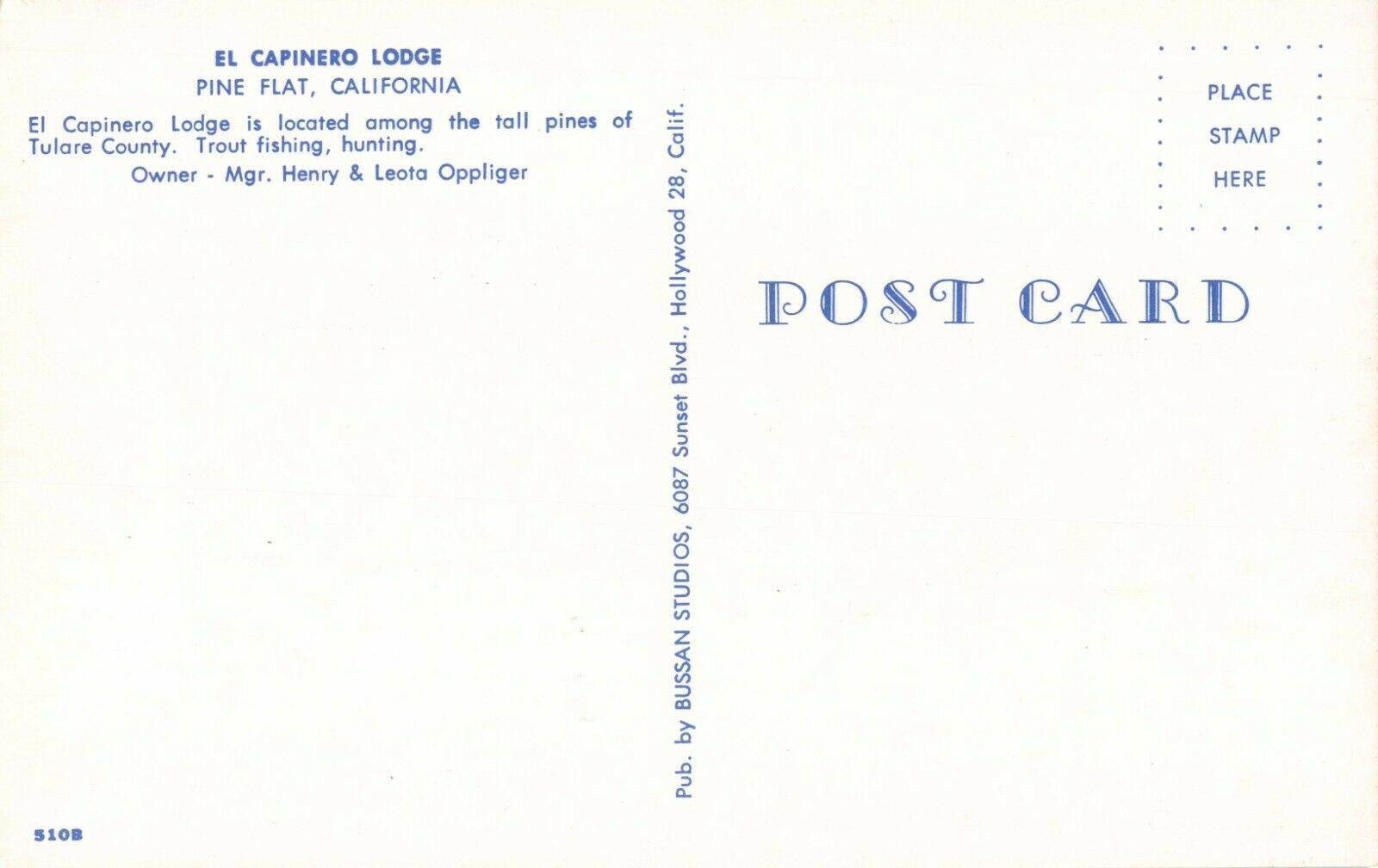 Postcard El Capinero Lodge Pine Flat California