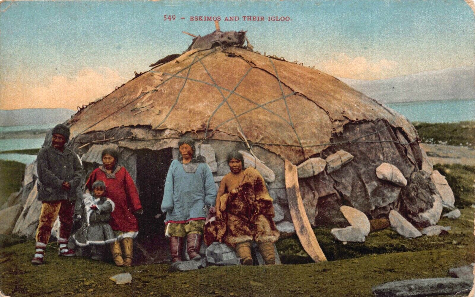 Postcard Eskimos and Their Igloo, Alaska~130720
