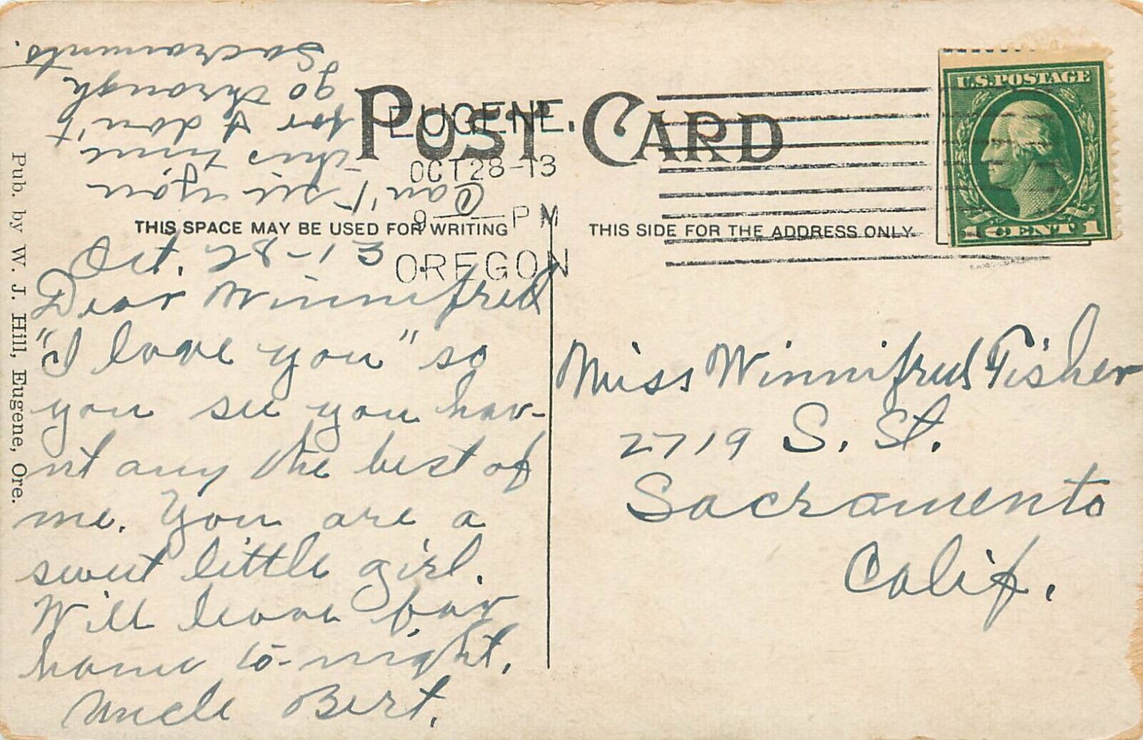 Postcard; Eugene OR Willamette Street Scene South, Posted 1913