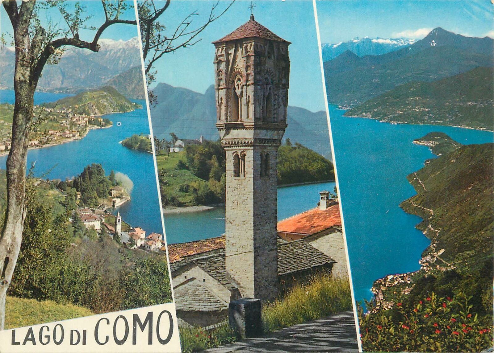 Postcard Europe Italy Como lake multi view clocktower 1969