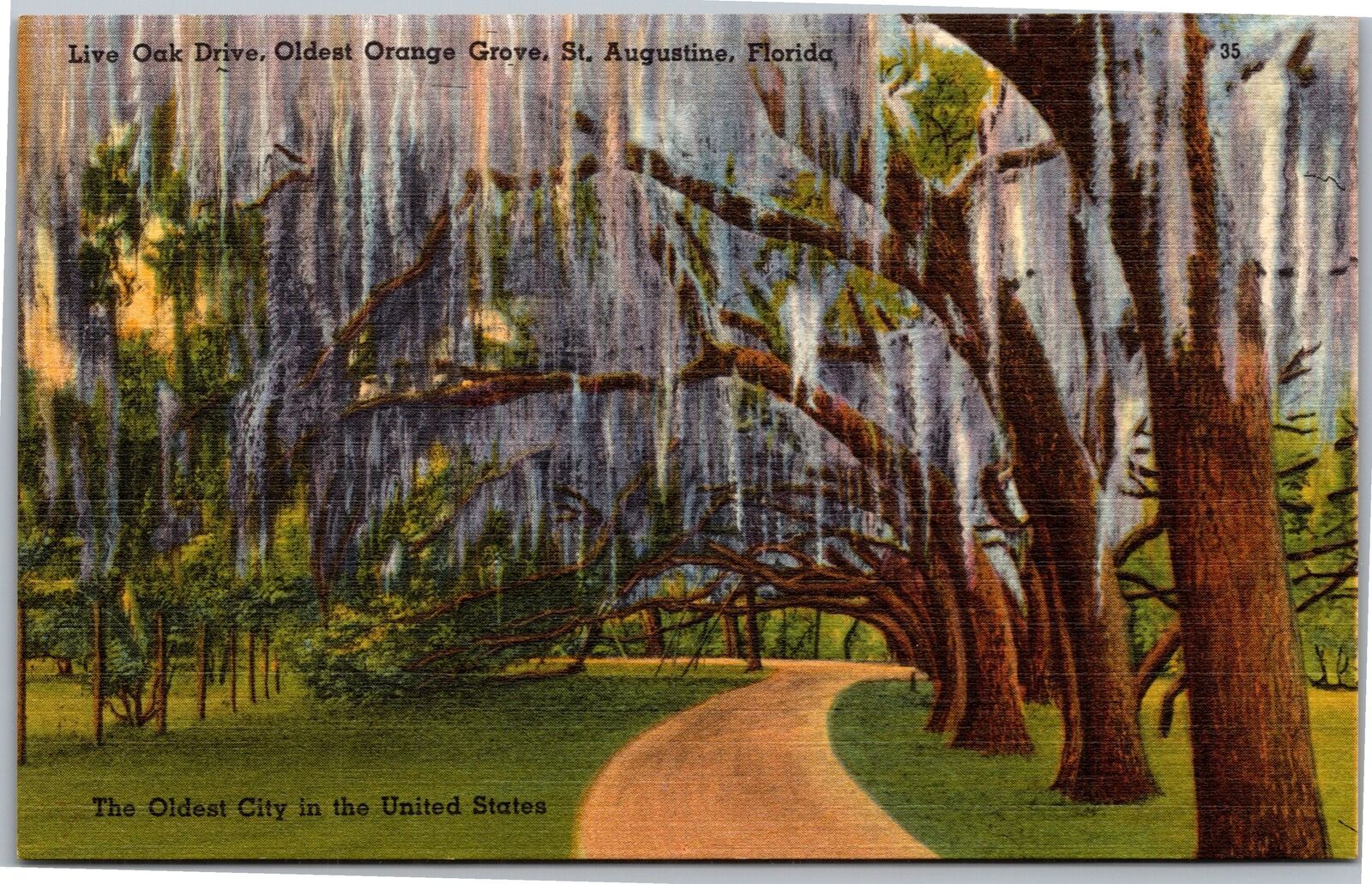 Postcard FL St. Augustine Live Oak Drive Oldest Orange Grove