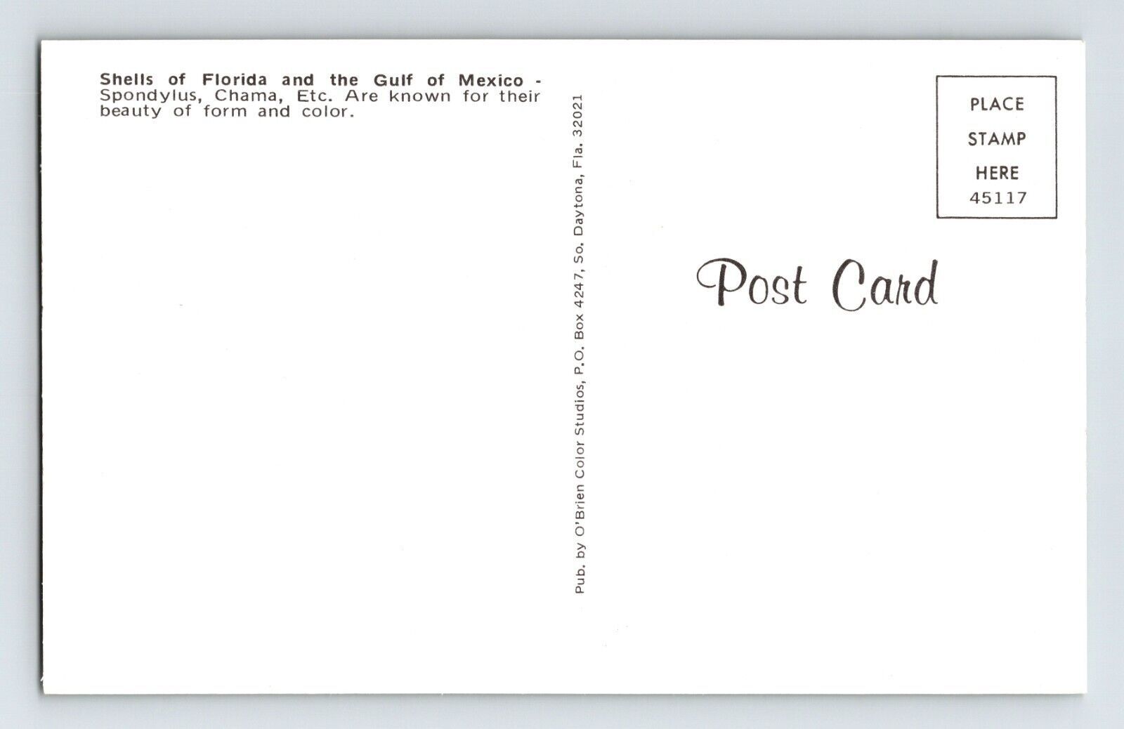 Postcard Florida FL Sea Shells Gulf Mexico 1970s Unposted Chrome