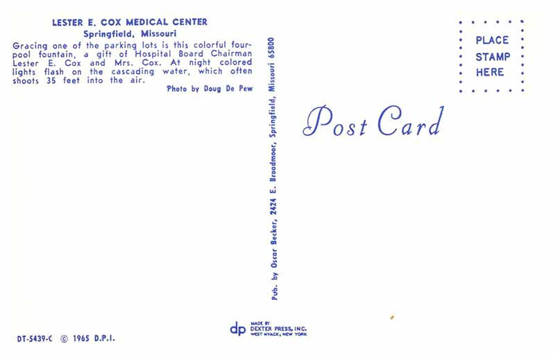 Postcard FOUNTAIN SCENE Springfield Missouri MO AS4542