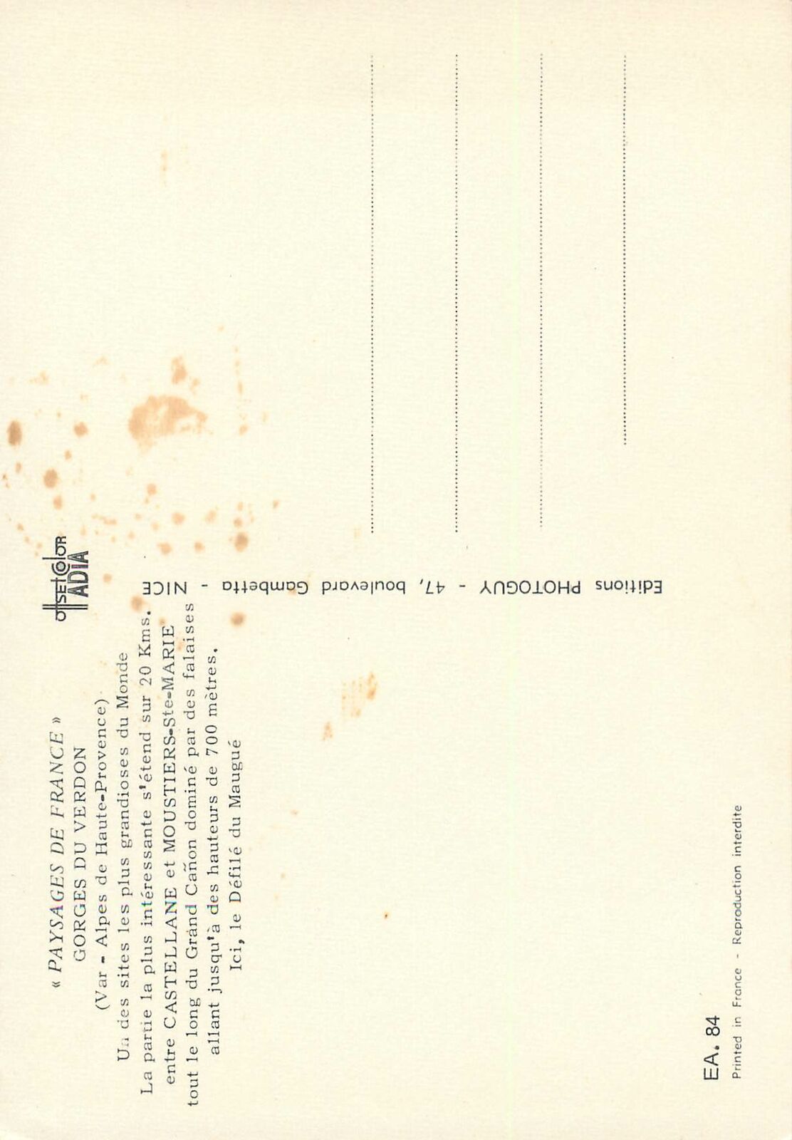 Postcard France Gorges du Verdon