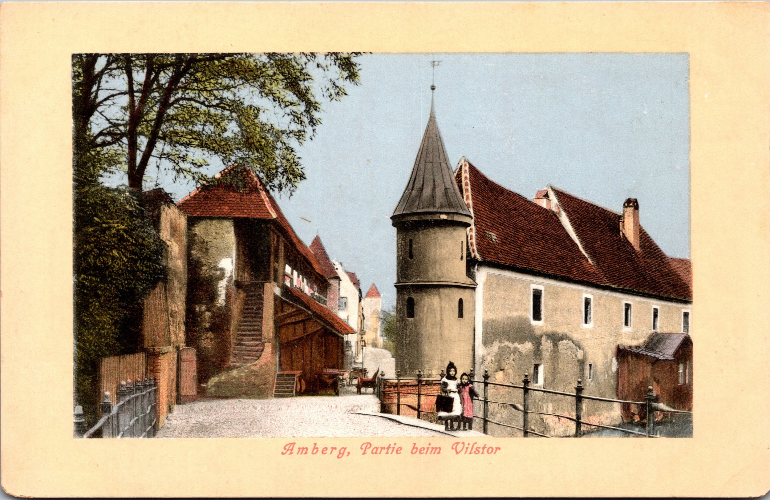 Postcard Germany Amberg Vilstor medieval tower & walls