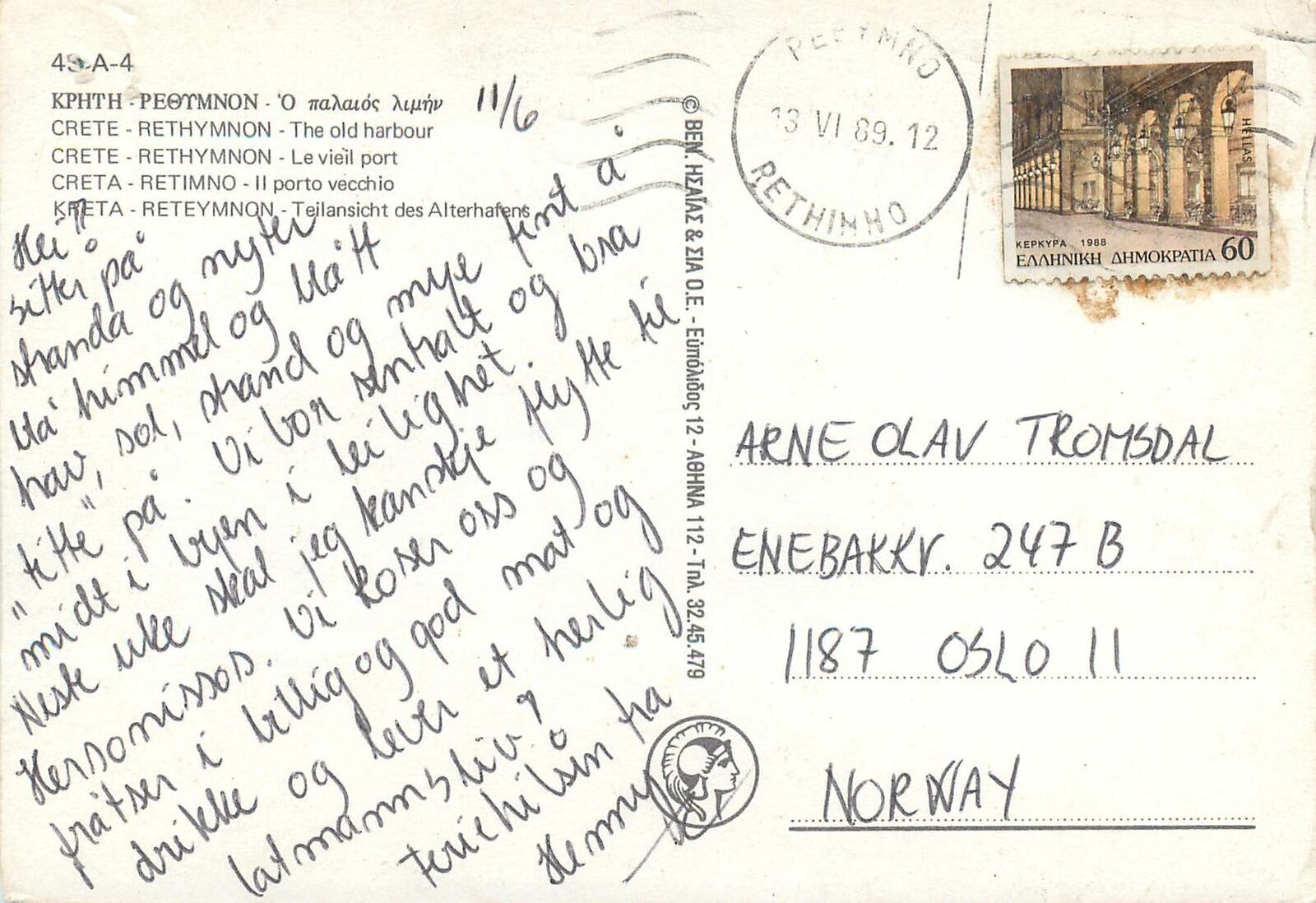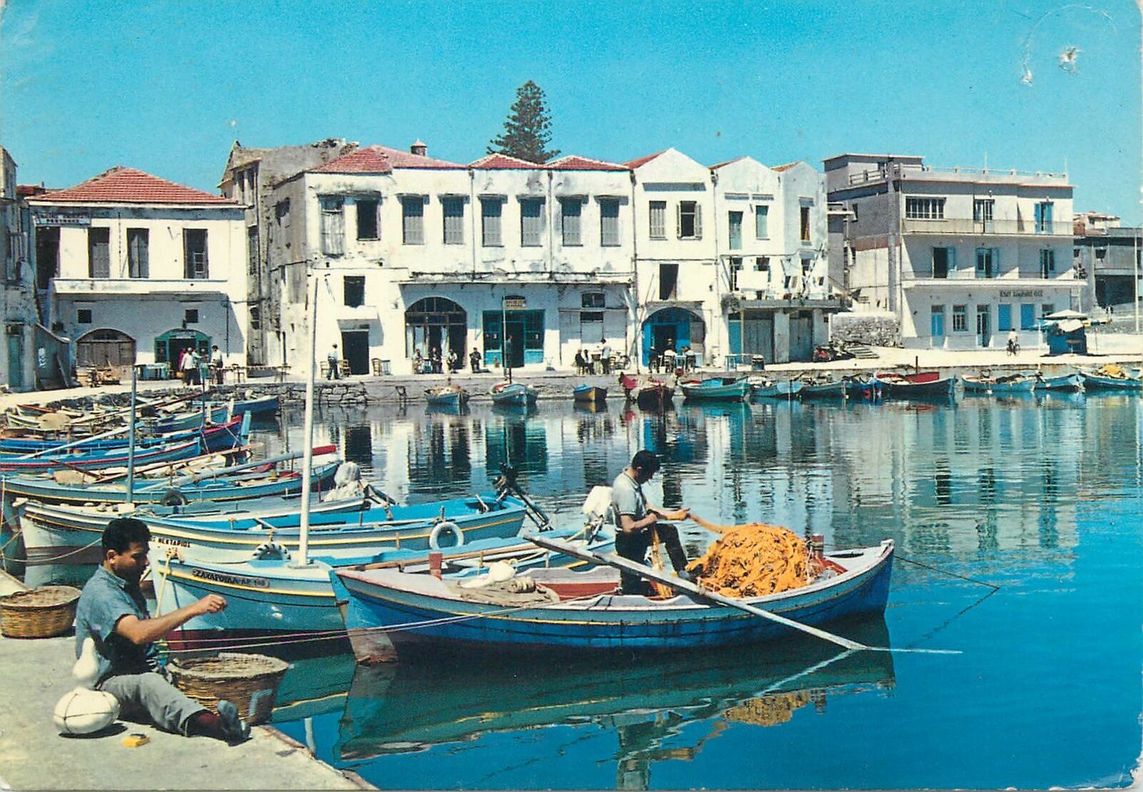 Postcard Greece Crete Rethymnon old harbour types and scenes
