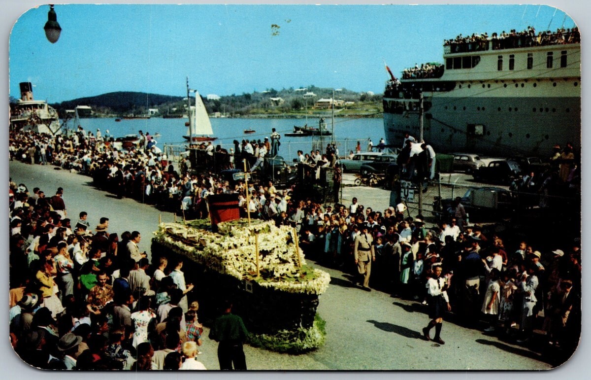 Postcard Hamilton Bermuda Easter Parade Float Harbor Boats 1950s Chrome